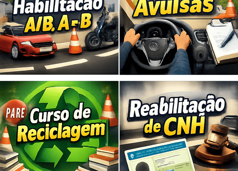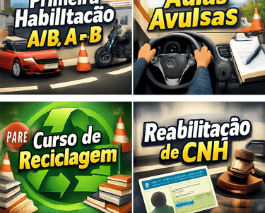 Primeira Habilitação, Reciclagem, Reabilitação e Aulas Avulsas.